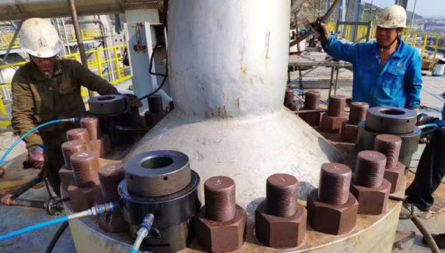 如果電壓沒有問題,電動超高壓泵站的額定最大壓力為150MPa,而泵站卻只能打到120MPa。出現這種情況我們基本就可以斷定是泵站或者液壓螺栓拉伸器內部出現了泄漏?梢詥为毚驂号挪槭潜谜具是螺栓拉伸器出現了泄漏。如果不連接螺栓拉伸器泵站壓力沒有問題,那就是螺栓拉伸器密封泄露,需要更換內部密封。如果單獨打壓泵站還是無法升到最大壓力,那么就可以確定為泵站泄漏。依次檢查調壓閥、截止閥閥芯是否磨損需要更換。如果調壓閥、截止閥沒有問題,那就是泵站內部出現了泄漏,需要聯系設備廠家進行檢測維修。